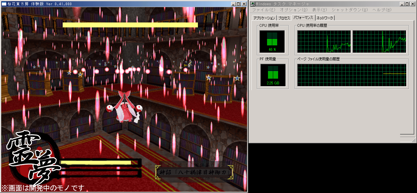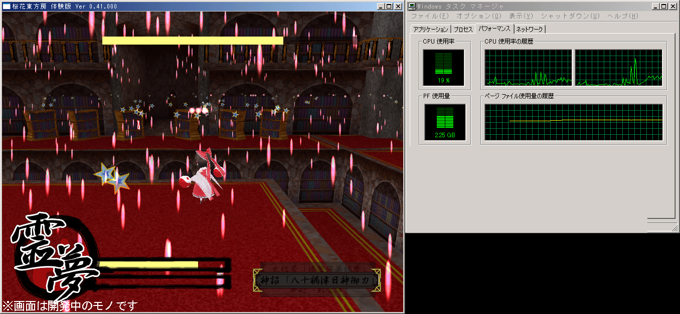 ちょっと分かりづらいスクリーンショットですが、弾幕全体や弾幕との距離感が把握しやすくなっていますので、大分よけやすくなるかと思います。